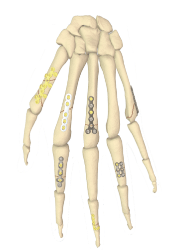 Les fractures ouvertes, ou déplacées avec troubles de rotation seront traitées chirurgicalement. Le choix du traitement chirurgical est fonction de l’os atteint, du siège et du type de fracture.