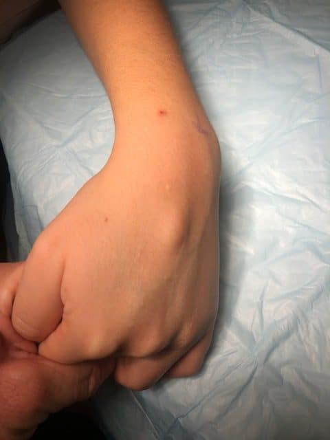 Suites opératoires : Pas de point à enlever, la main sera mouillée 10 jours plus tard. Une attelle est préconisée durant 10 jours, afin de mettre le poignet au repos. L’enjeu est de récupérer la souplesse du poignet, pour cela, quelques séances de rééducation sont prescrites.