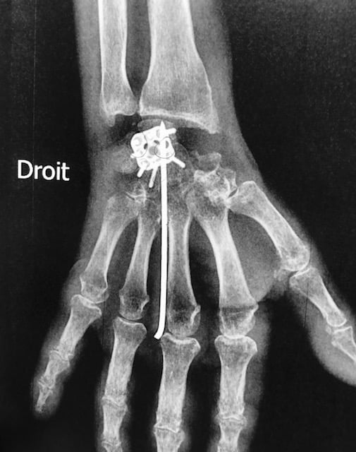 Ce type de traitement donne de très bons résultats. Le poignet sera gênant et gonflé durant 3 à 4 mois. 10 % des patients peuvent présenter des phénomènes douloureux importants, exubérants, avec tuméfaction de la main et raideur des doigts et du poignet, appelé algodystrophie.